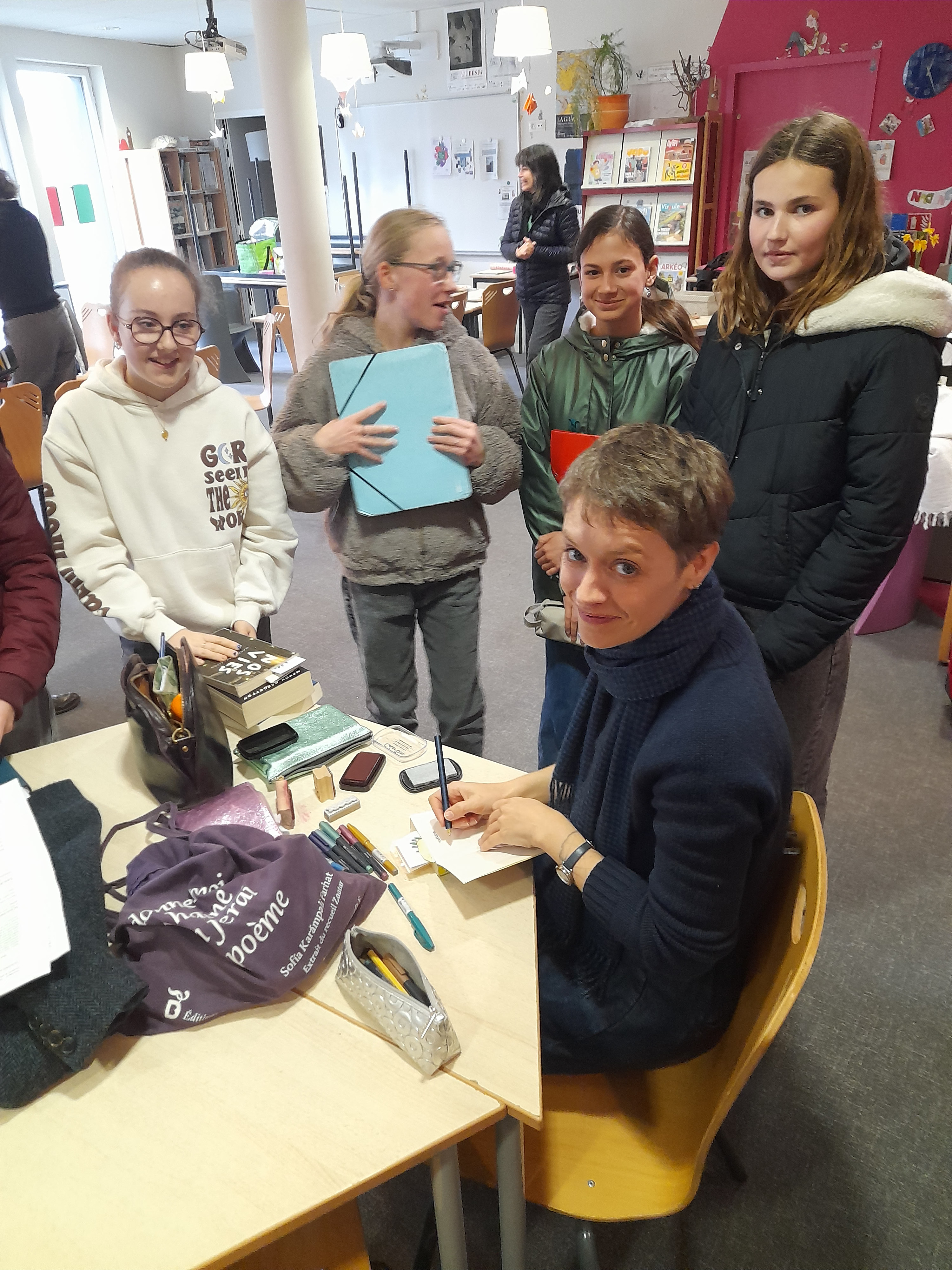 Tania et des élèves avant de quitter le théâtre |