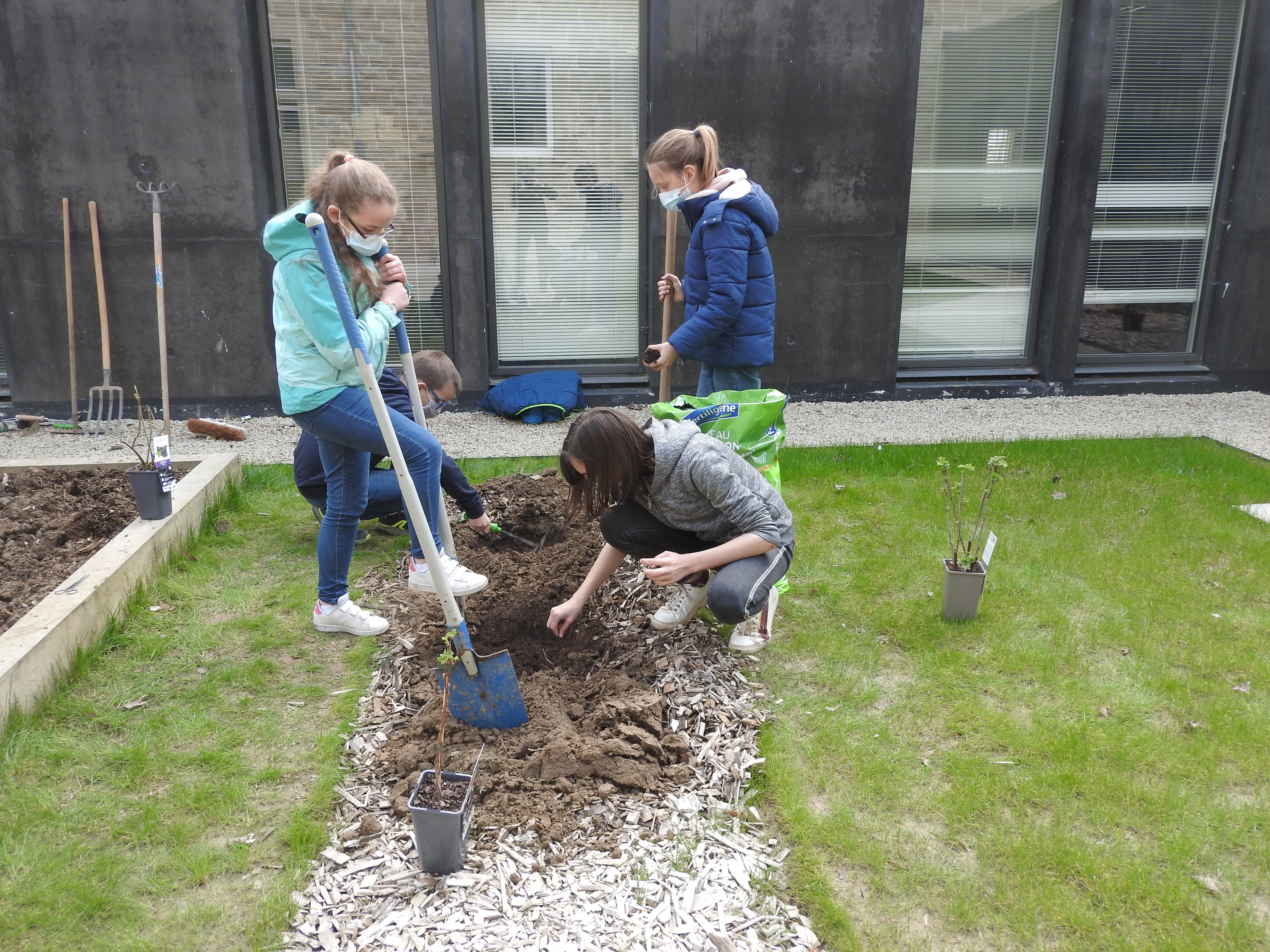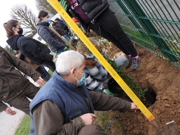 Une haie arbustive au collège : 140 mètres de long, 144 plants !
