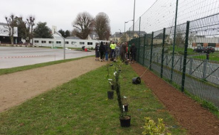 Une haie arbustive au collège : 140 mètres de long, 144 plants !