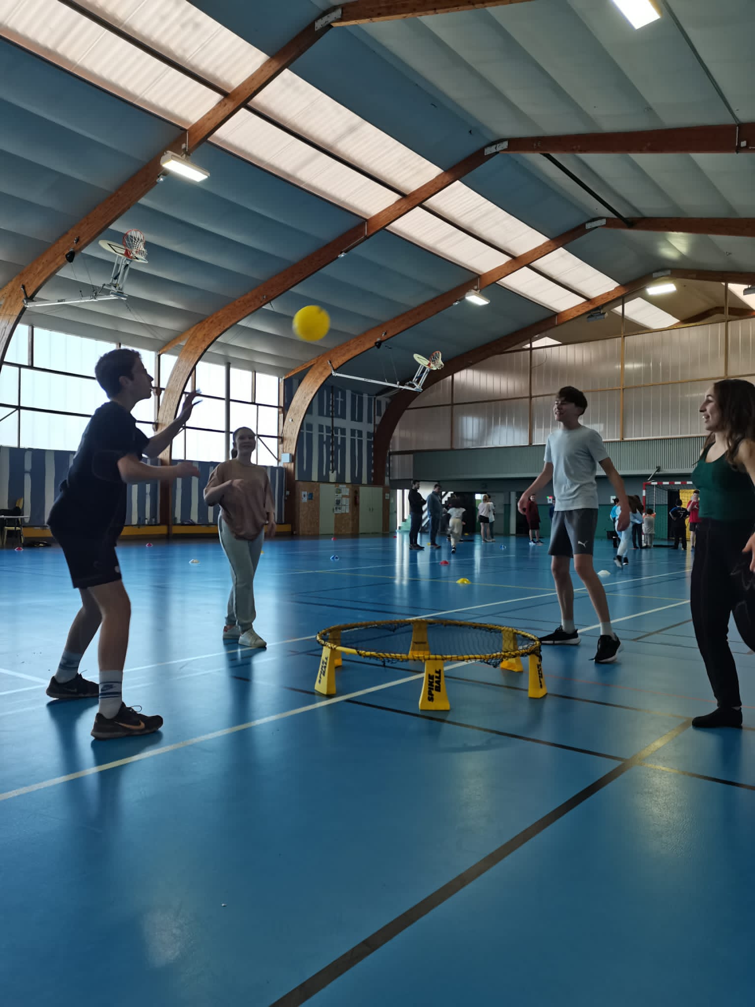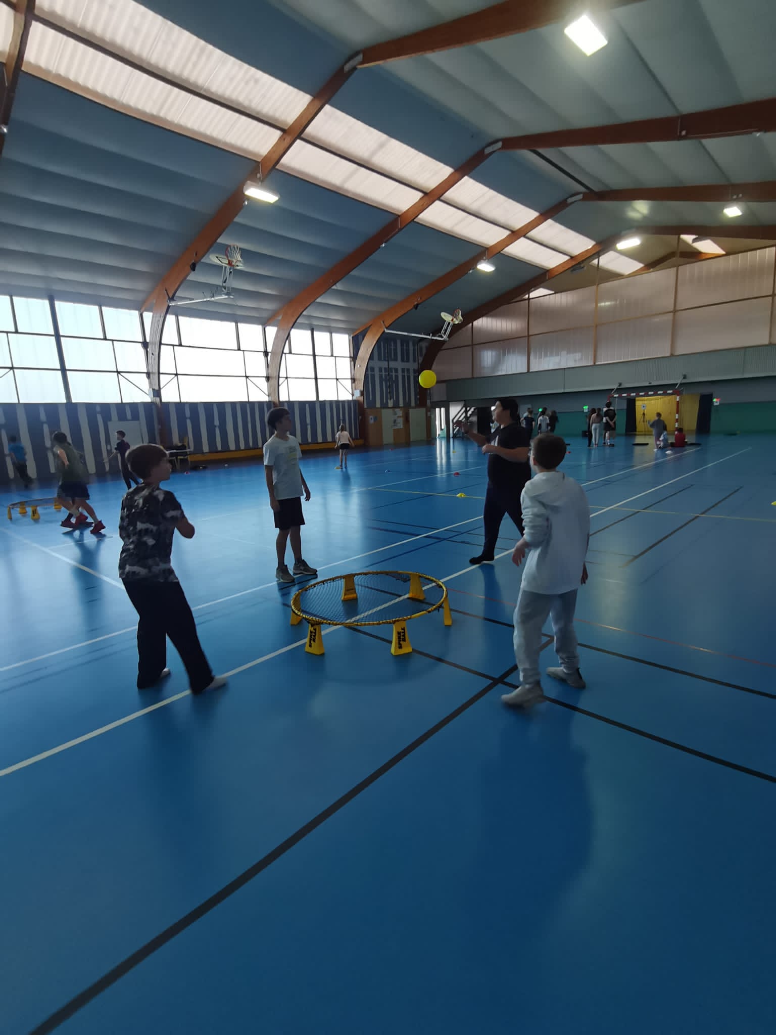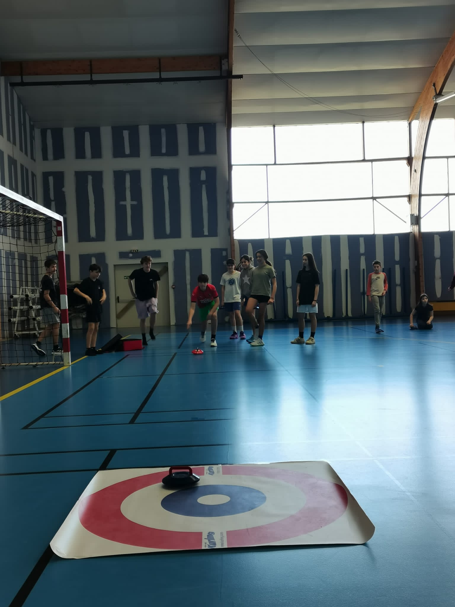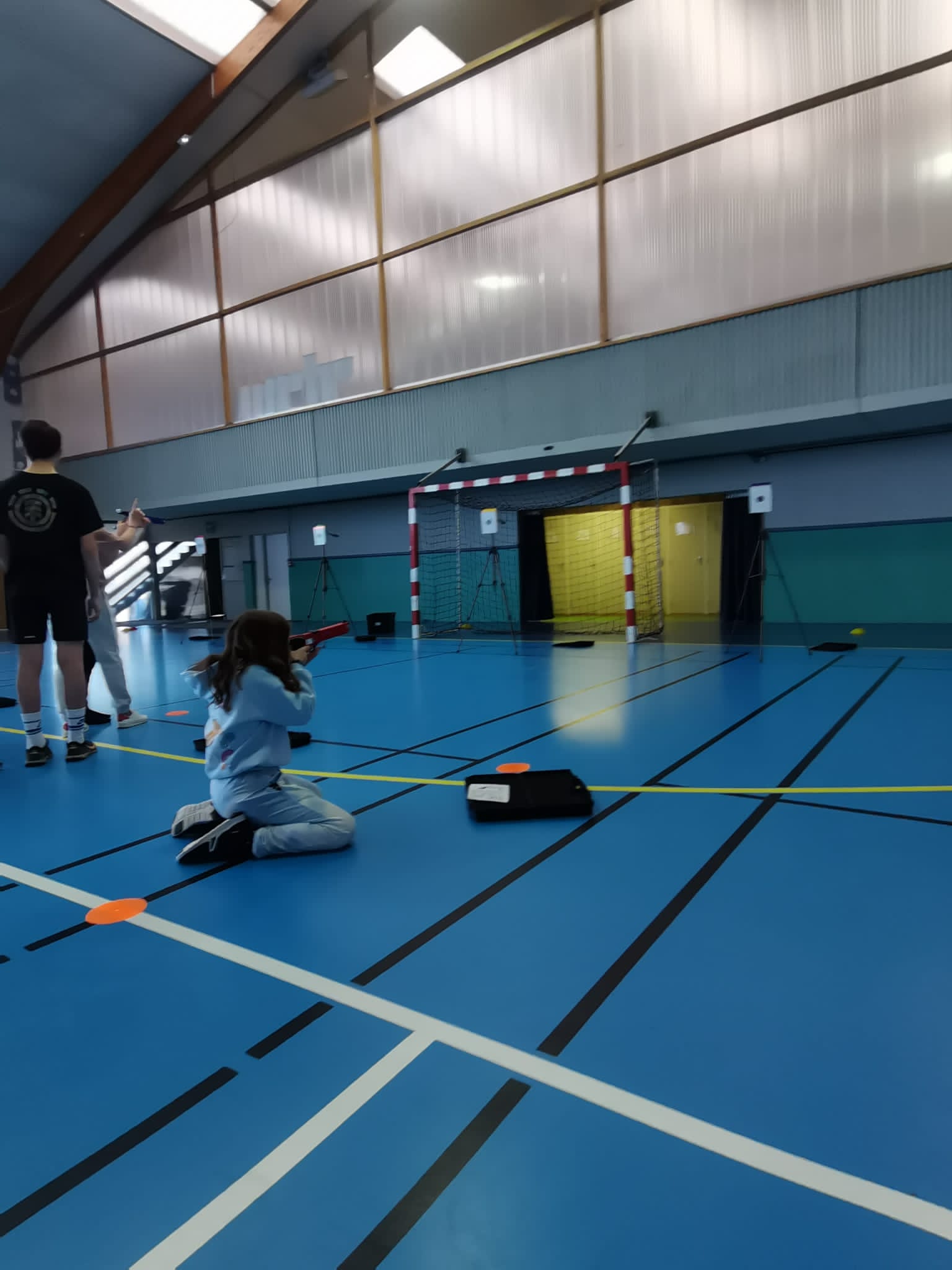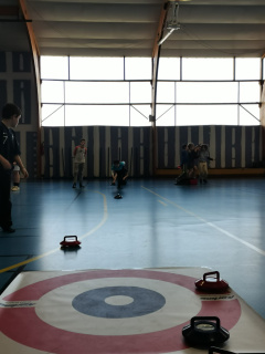 Au programme de cet après-midi ludique : initiation au tir au pistolet laser sous forme de Biathlon, curling (sphères sur roulettes… Pas de patinoire à Tinténiac !) et Spikeball.