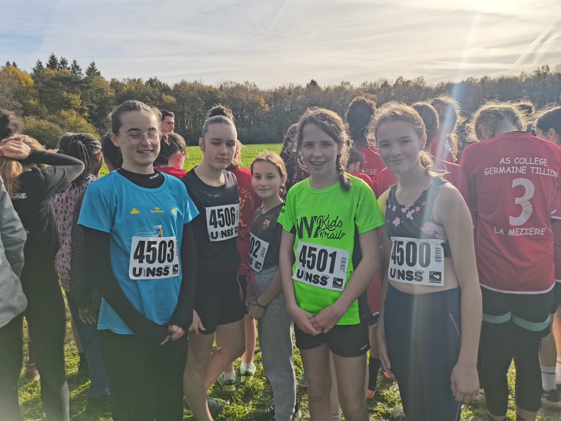 1500 collégiens se sont retrouvés sous le soleil et sur un terrain gras propice au cross. Nos élèves étaient prêts à défier leurs homologues bretilliens. Ils ont donné leur maximum sur les différentes courses de la journée et réalisé de superbes performances.