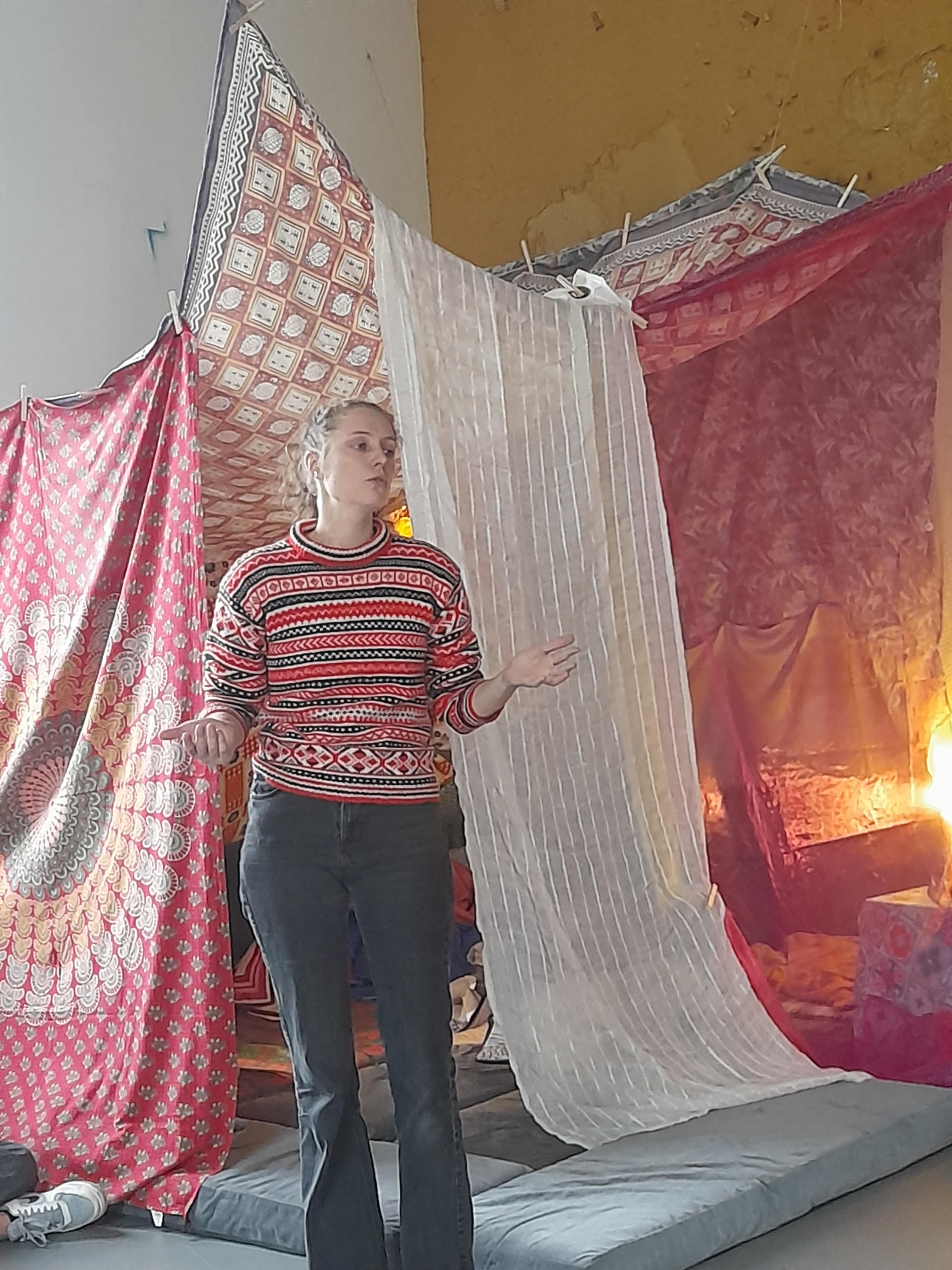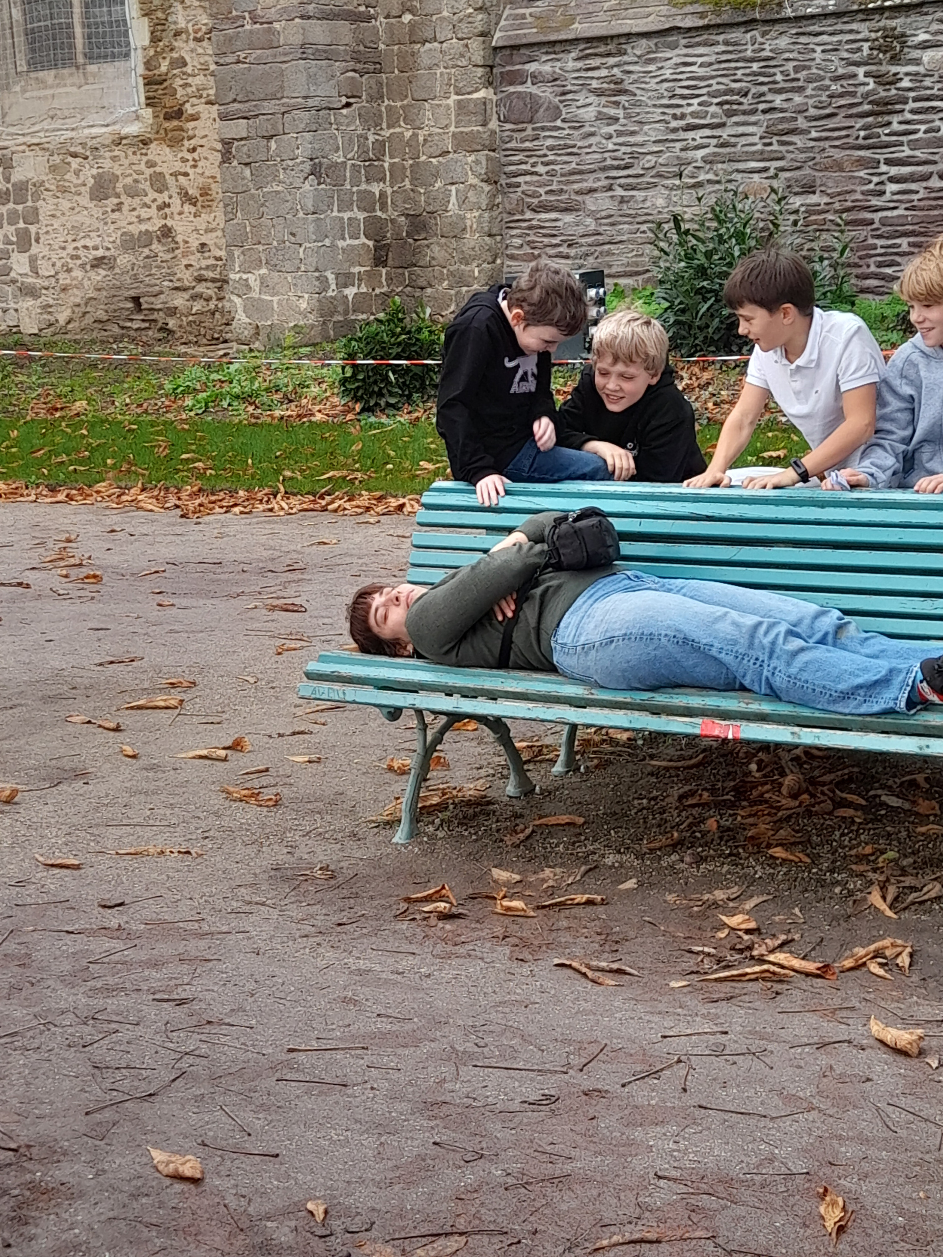 Ensuite, la moitié du groupe s’est dirigé vers le Thabor avec Jeanne pour une séance d’improvisation. Dans ce grand terrain de jeu, les apprentis comédiens jouaient les esprits du parc qui s’amusaient à « promener » Jeanne, pour la conduire tout doucement vers la sortie. Pendant ce temps, à l’Hôtel Pasteur, dans une accueillante alcôve aux coussins moelleux, les élèves ont évoqué l’héroïne qui leur tenait à cœur (souvent la maman, parfois une amie, ou un personnage inventé, un animal de compagnie) auprès d’Astrid qui recueillait leurs paroles. Ils ont aussi réalisé des collages pour présenter leur héroïne. Les groupes ont tourné pour que tout le monde participe aux deux ateliers.